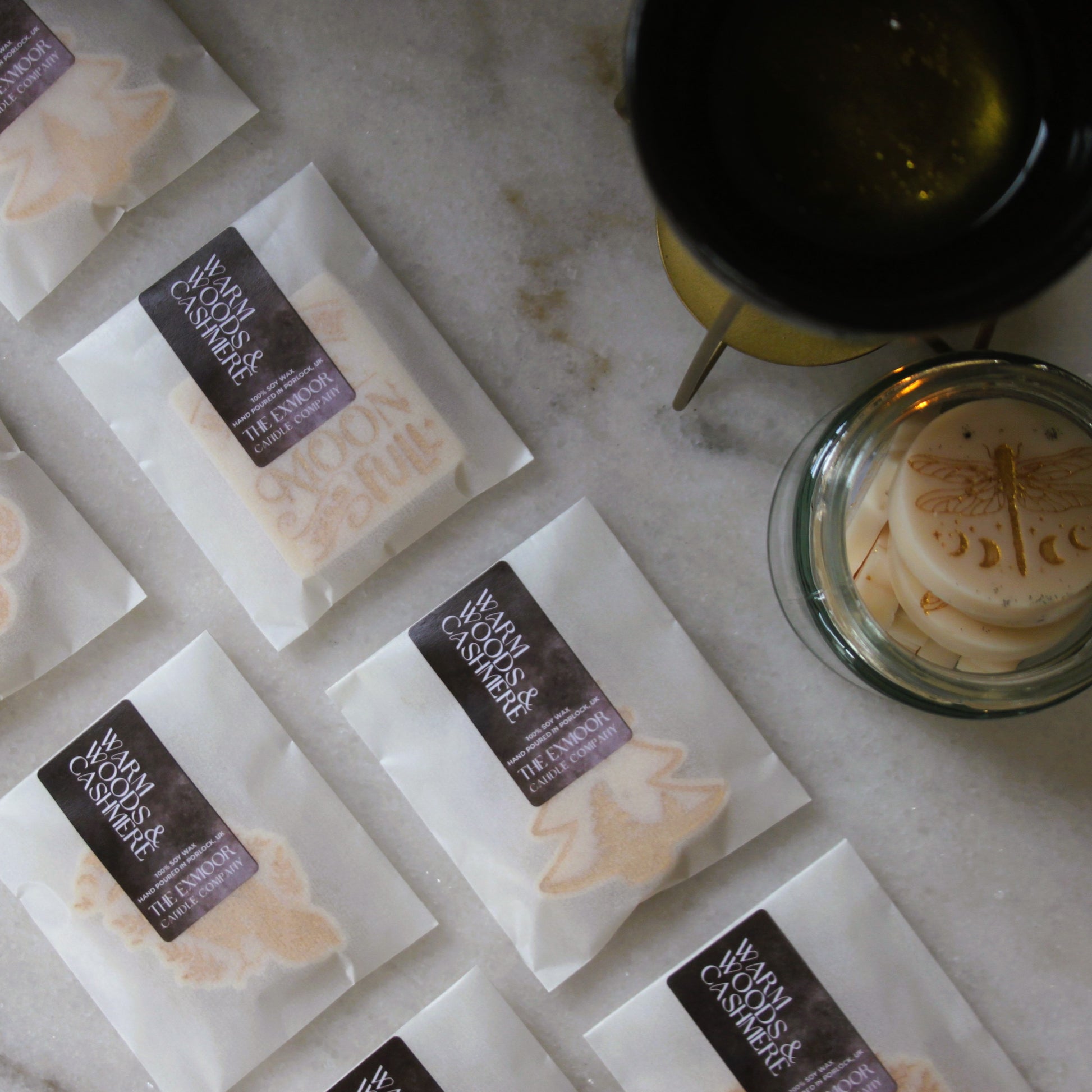 Please note that I am conscious of not wasting products and striving to be a zero waste business as much as possible. Your samples may be slightly imperfect looking or 'waxidents' e.g. broken snap bars – but the imperfections can be a natural characteristic of soy wax and it will not affect the scent of the product whatsoever. The bags the samples come in are biodegradable, as is the wax & glitter used.