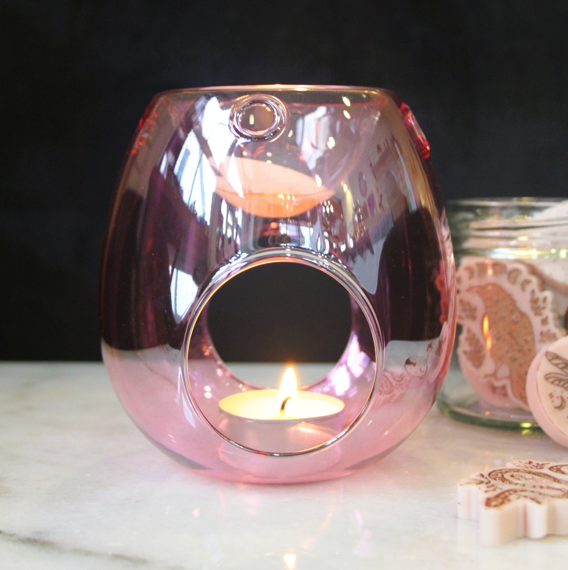 The most stunning pink glass wax burner. A beautiful decoration piece in any home. Simply place an unscented tea light inside the burner and place your wax melt on top to fill your home with fragrance!